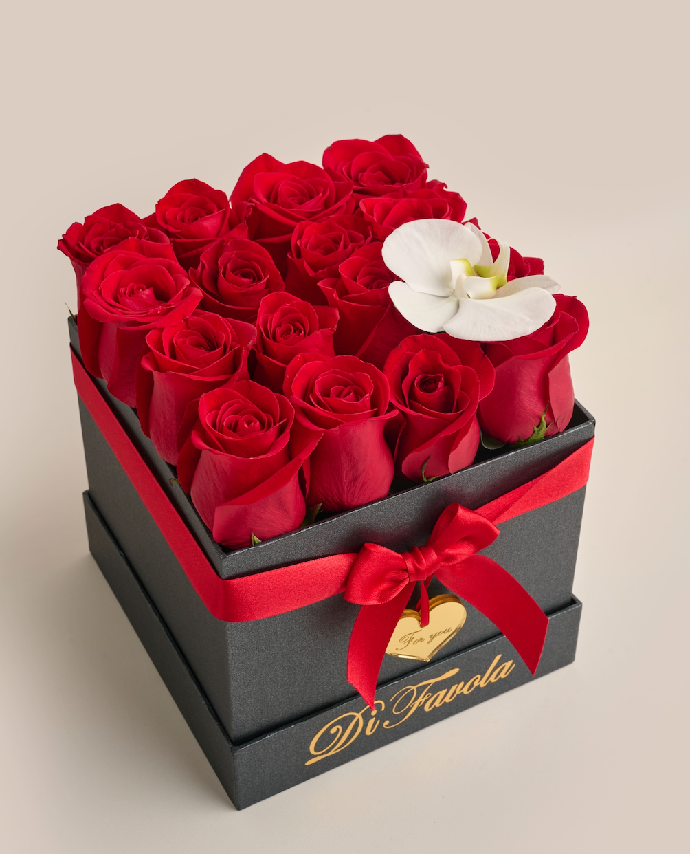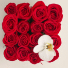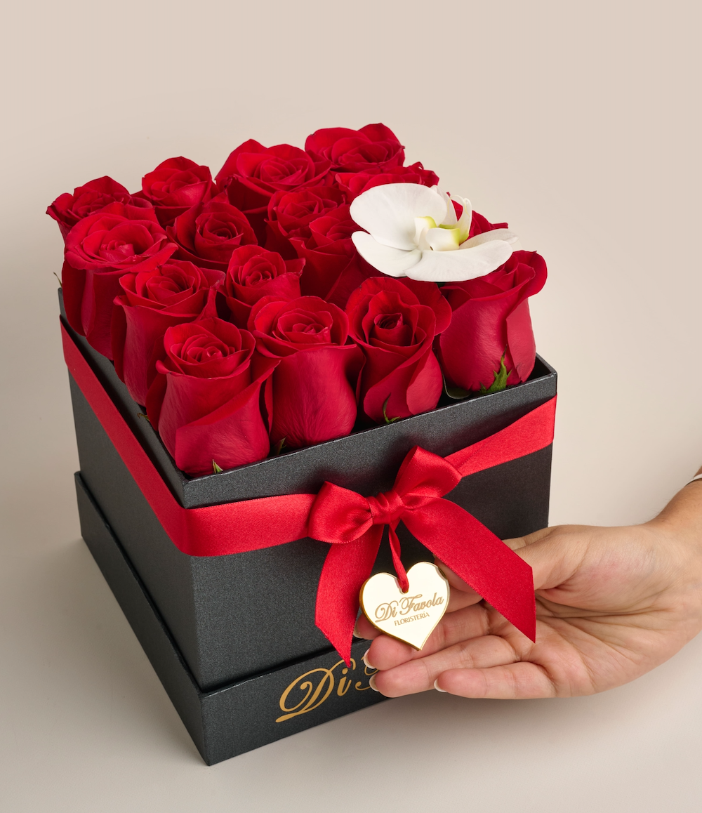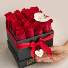 6 rosas que hablan de amor y una orquídea que aporta distinción y lujo en un solo detalle.