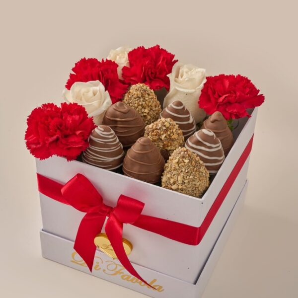Select options Este producto tiene múltiples variantes. Las opciones se pueden elegir en la página de producto#5 Conexión dulce floral: caja cuadrada pequeña con Fresas con chocolate y flores